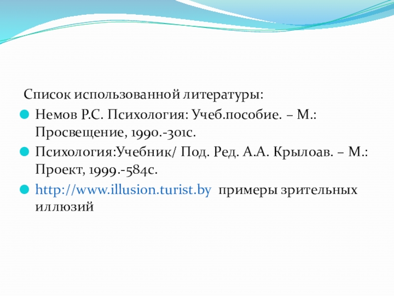 Немов Р.С. Психология: Учеб.пособие. – М.:Просвещение, 1990.-301с.