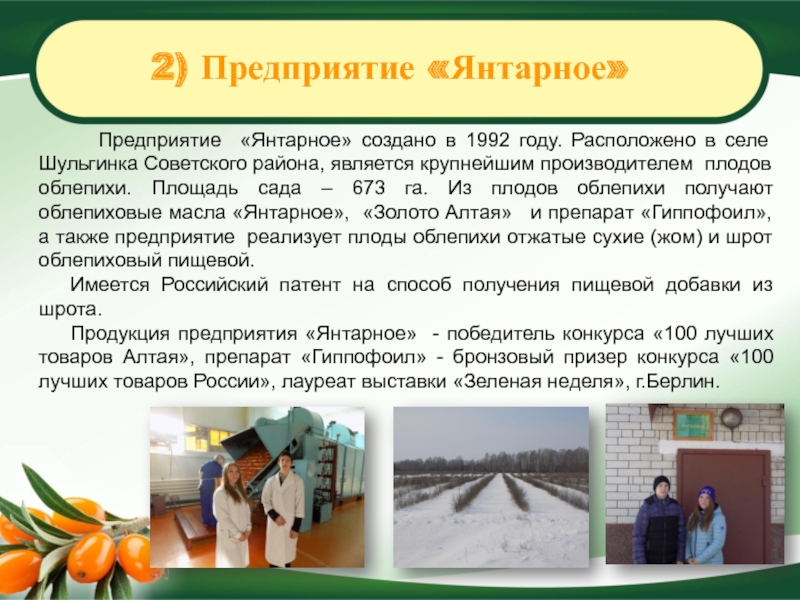 2. В нашем районе находится предприятие «Янтарное», созданное в 1992 году.