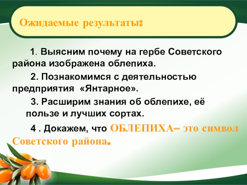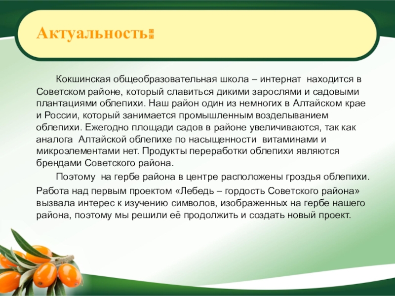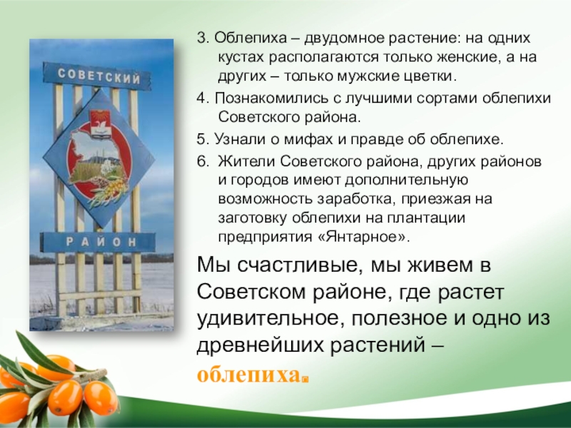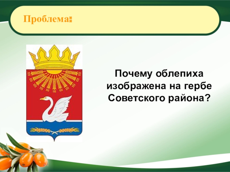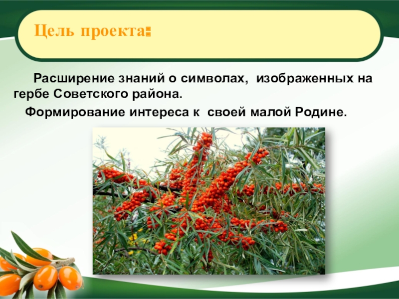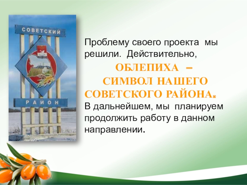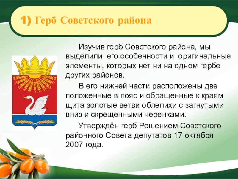 Две золотые ветви облепихи, положенные накрест на гербе нашего района являются его символом.
