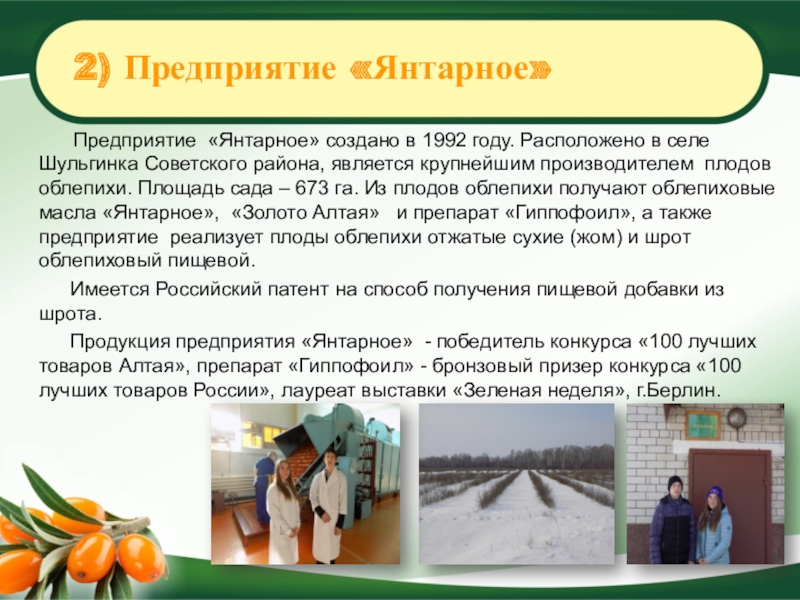 2. В нашем районе находится предприятие «Янтарное», созданное в 1992 году.