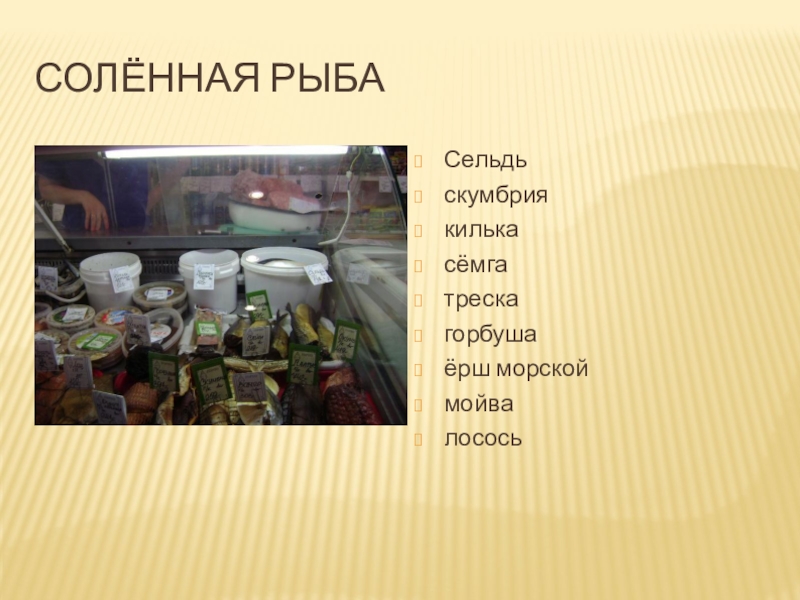 СОЛЁННАЯ РЫБАСельдьскумбриякилькасёмгатрескагорбушаёрш морскоймойвалосось