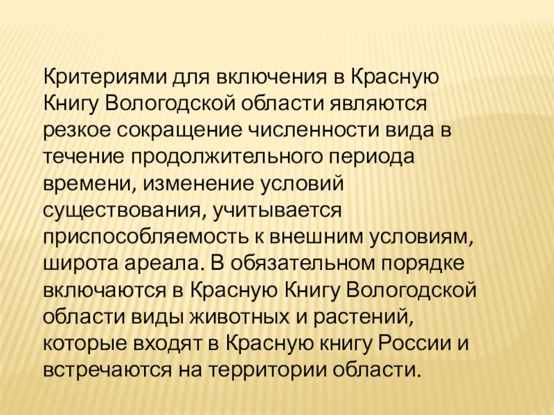 Слайд 19Критериями для включения в Красную Книгу Вологодской области являются резкое сокращение
