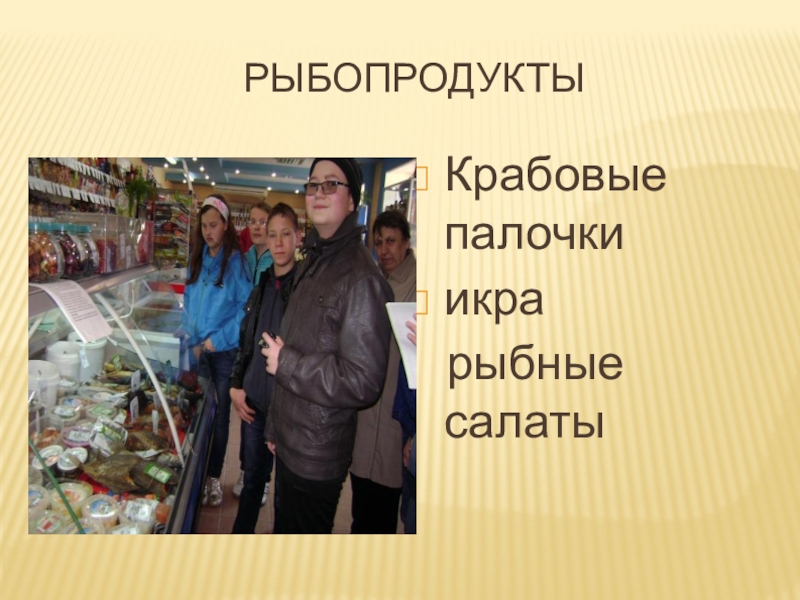 РЫБОПРОДУКТЫКрабовые палочкиикра  рыбные салаты
