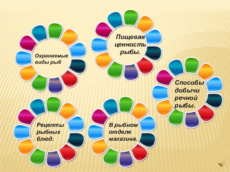 Охраняемые виды рыбПищевая ценность рыбы.Способы добычи речной рыбы.Рецепты рыбных блюд.В рыбном отделе магазина.