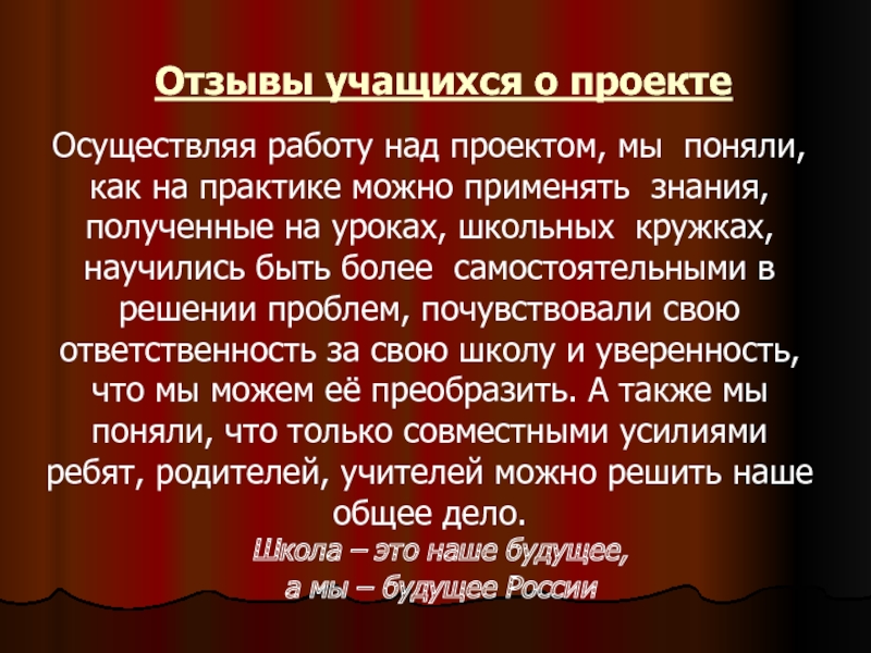 Это сайт презентаций, где можно хранить и обмениваться своими презентациями, докладами, проектами, шаблонами в формате PowerPoint с другими пользователями. Мы помогаем школьникам, студентам, учителям, преподавателям хранить и обмениваться учебными материалами.