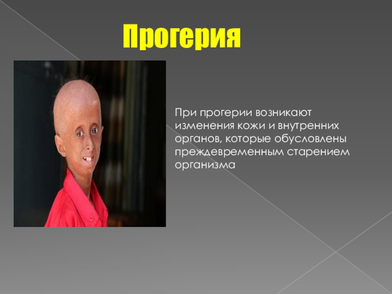 При прогерии возникают изменения кожи и внутренних органов, которые обусловлены преждевременным старением организма