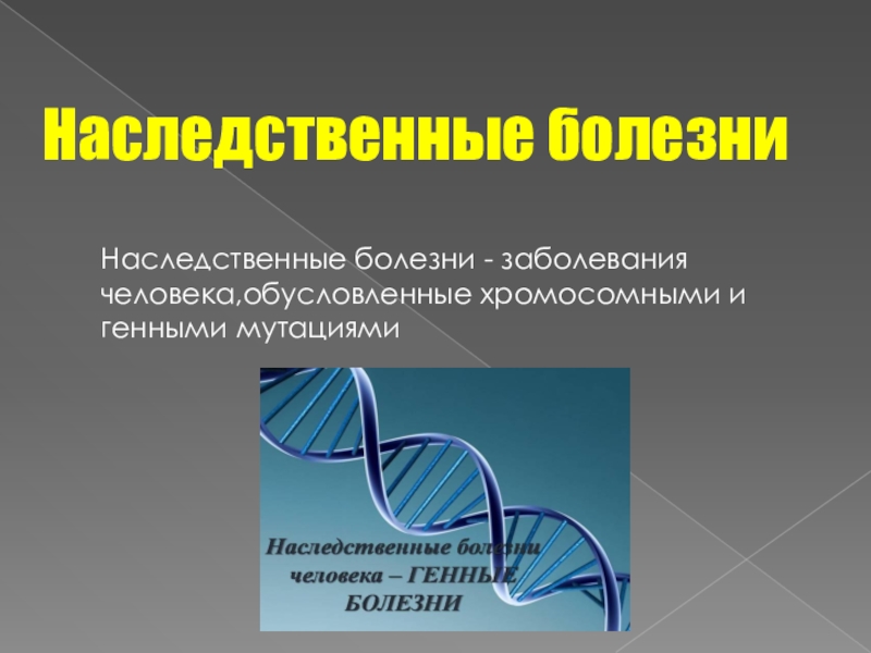 Наследственные болезни - заболевания человека,обусловленные хромосомными и генными мутациями
