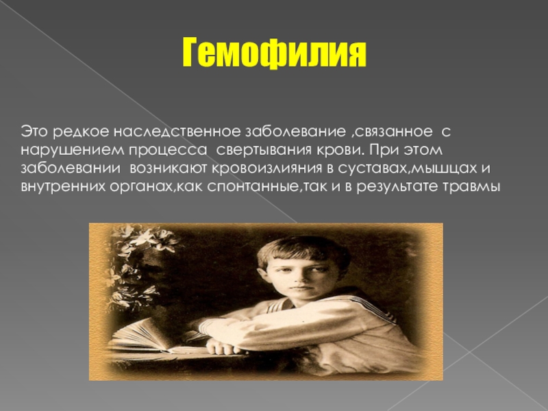 Это редкое наследственное заболевание ,связанное с нарушением процесса свертывания крови. При