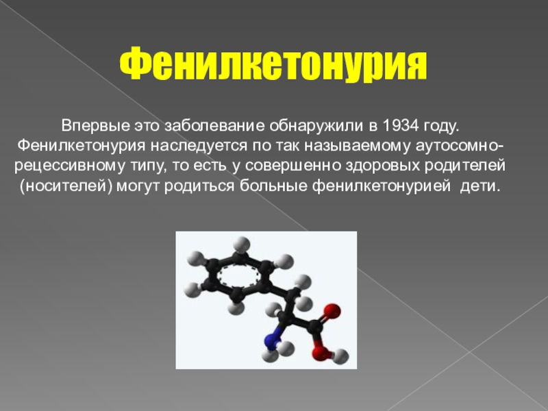 называемому аутосомно-рецессивному типу, то есть у совершенно здоровых родителей (носителей) могут родиться больные фенилкетонурией дети.