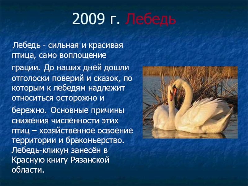 Слайд 252009 г. Лебедь