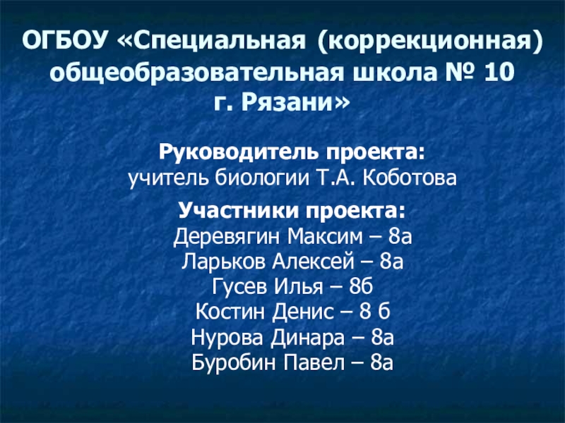 Слайд 2ОГБОУ «Специальная (коррекционная) общеобразовательная школа № 10