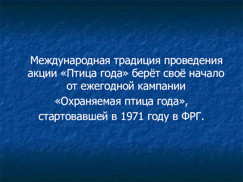 Международная традиция проведения акции «Птица года» берёт своё начало