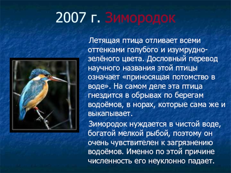 Слайд 232007 г. Зимородок