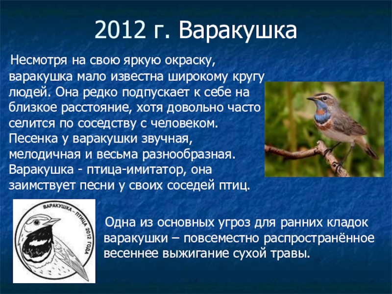 Слайд 282012 г. Варакушка