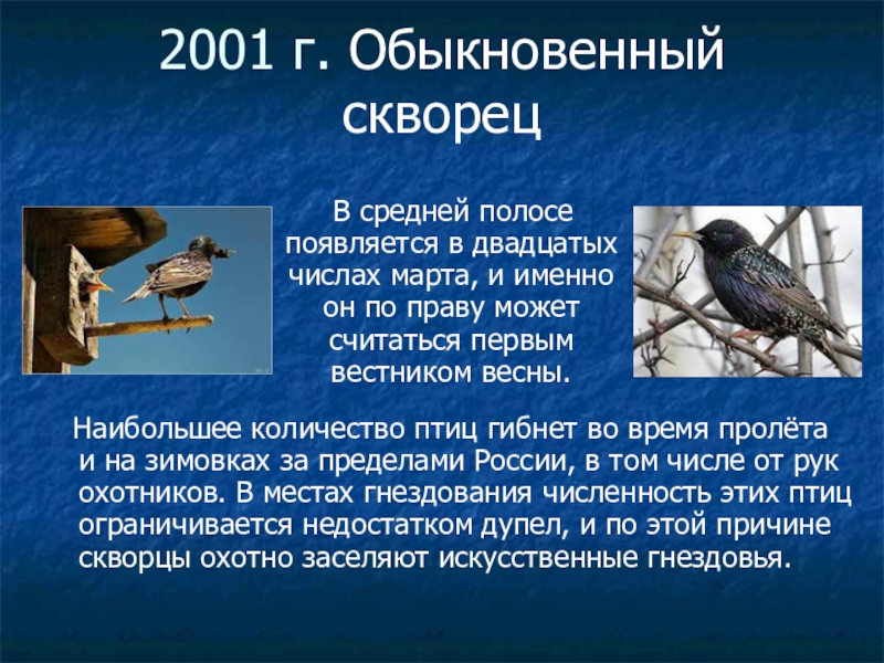 Слайд 172001 г. Обыкновенный скворец