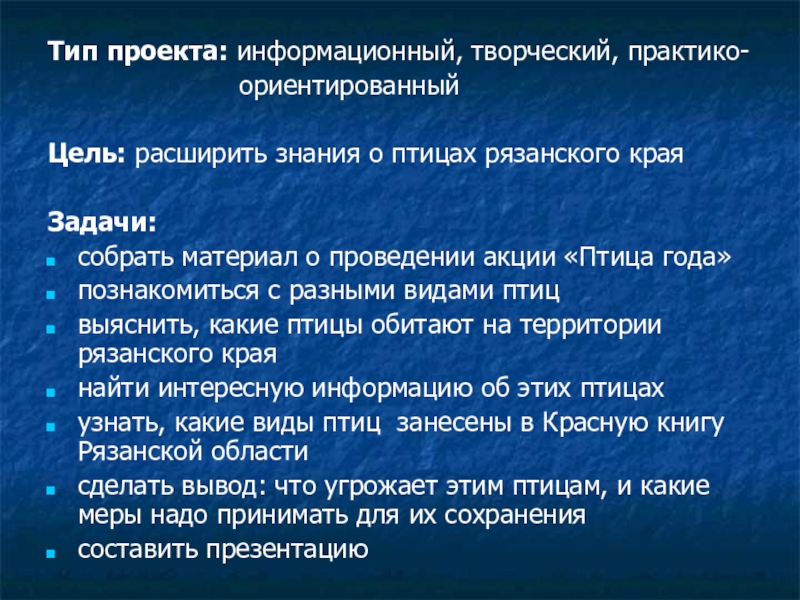 Цель: расширить знания о птицах рязанского края