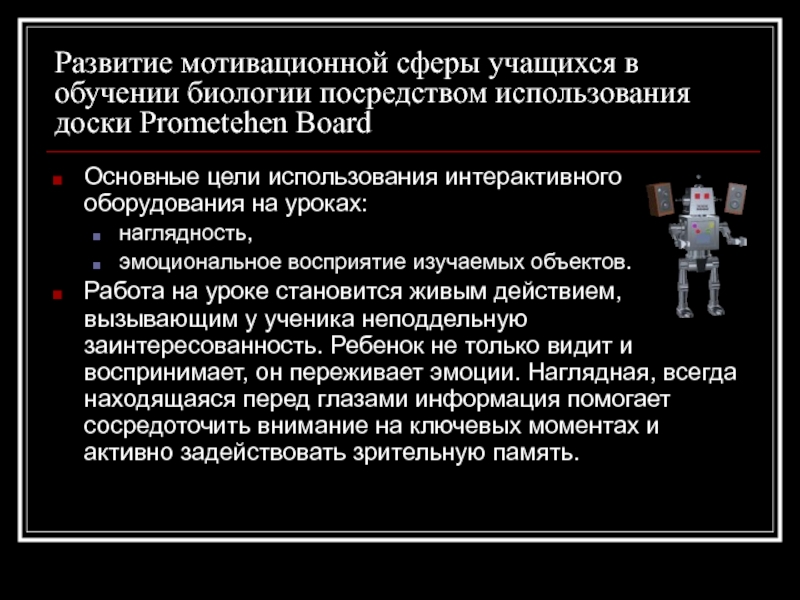 Работа на уроке становится живым действием, вызывающим у ученика неподдельную заинтересованность. Ребенок не только видит и воспринимает, он переживает эмоции. Наглядная, всегда находящаяся перед глазами информация помогает сосредоточить внимание на ключевых моментах и активно задействовать зрительную память.