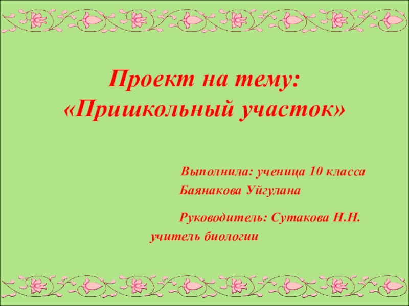 Руководитель: Сутакова Н.Н. учитель биологии