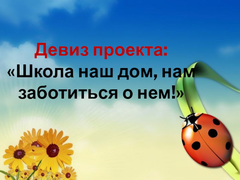 Слайд 4Девиз проекта: «Школа наш дом, нам заботиться о нем!»