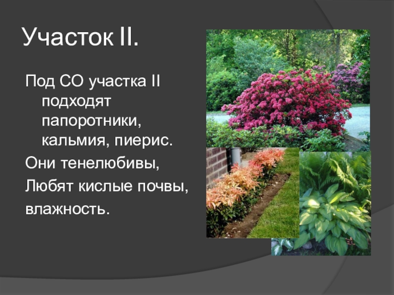 Под СО участка II подходят папоротники, кальмия, пиерис.