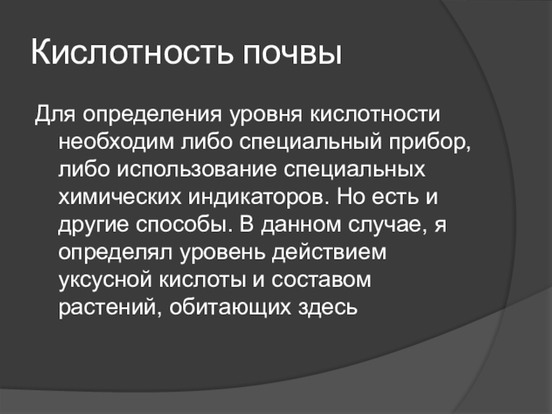 специальных химических индикаторов. Но есть и другие способы. В данном случае, я определял уровень действием уксусной кислоты и составом растений, обитающих здесь