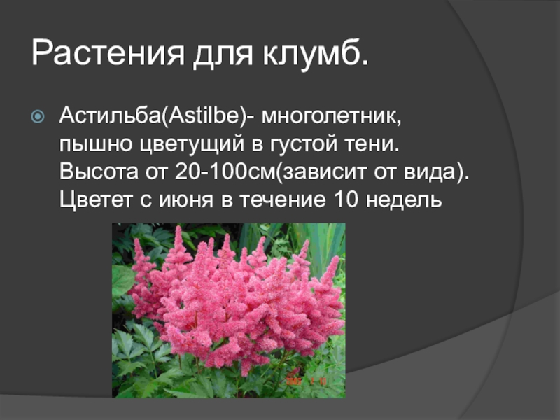 Астильба(Astilbe)- многолетник, пышно цветущий в густой тени. Высота от