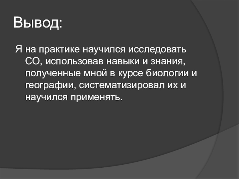Я на практике научился исследовать СО, использовав навыки и знания, полученные