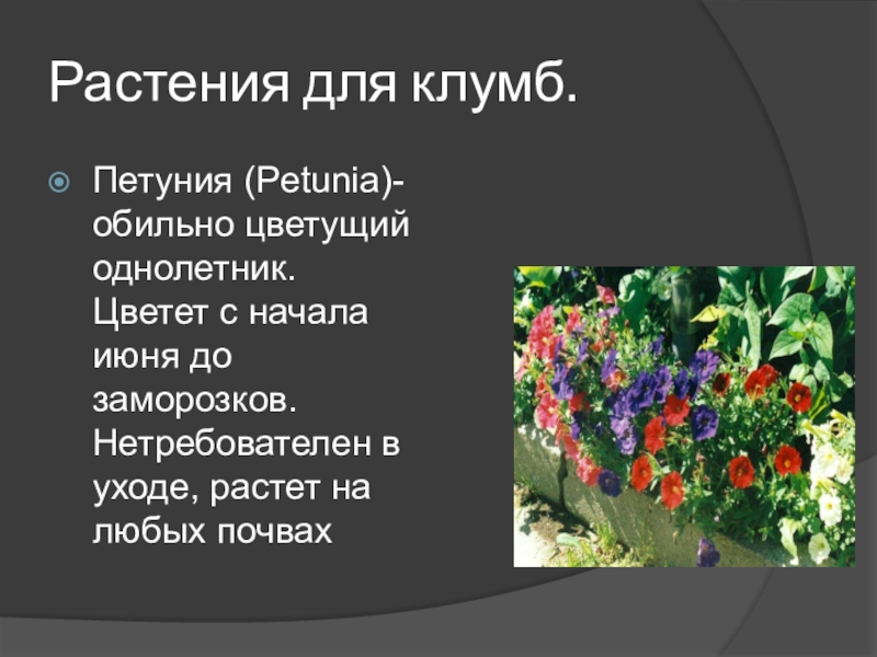Петуния (Petunia)- обильно цветущий однолетник. Цветет с начала июня