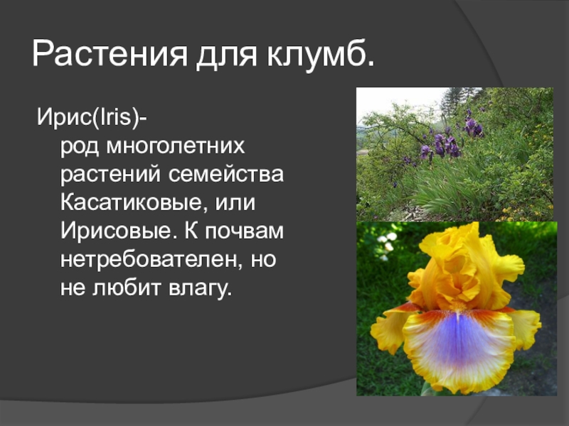 Ирис(Iris)-род многолетних растений семейства Касатиковые, или Ирисовые. К почвам нетребователен,