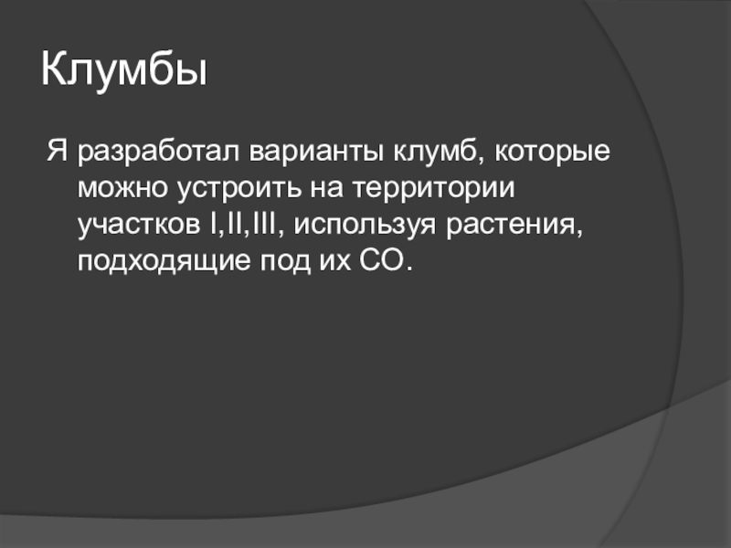 Я разработал варианты клумб, которые можно устроить на территории участков I,II,III,