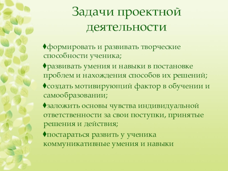 Слайд 5Задачи проектной деятельности