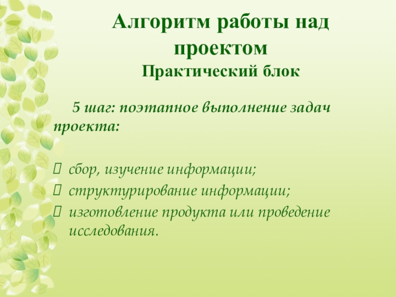 Слайд 14Алгоритм работы над проектом.