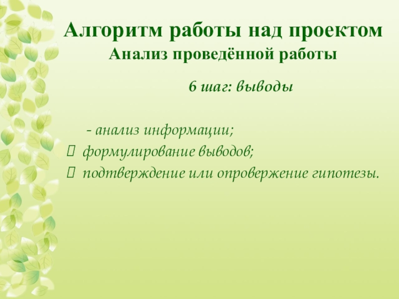 Слайд 18Алгоритм работы над проектом