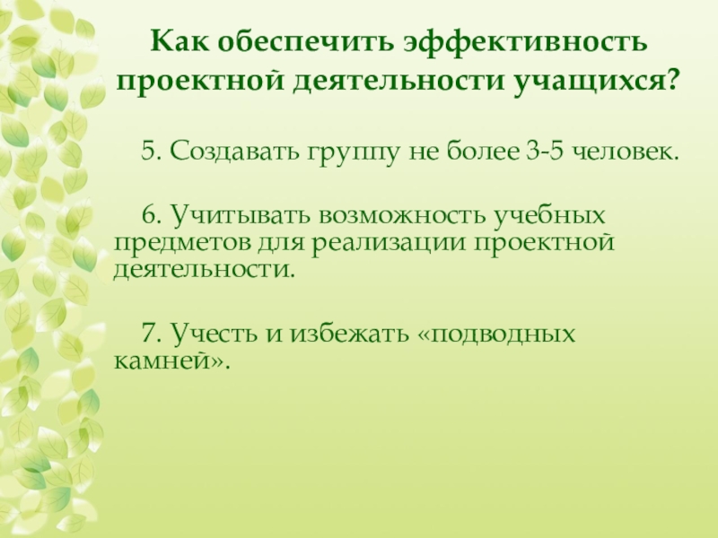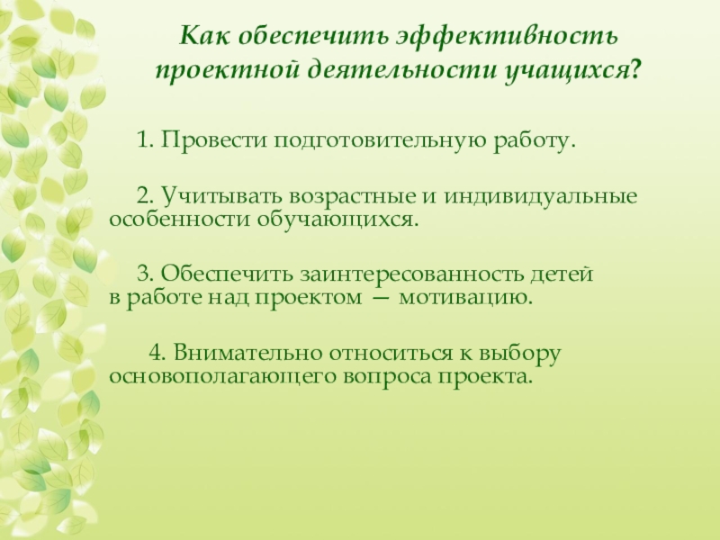 Слайд 47Как обеспечить эффективность проектной деятельности учащихся?