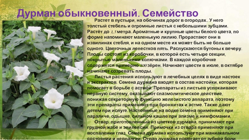 Слайд 10Дурман обыкновенный. Семейство пасленовые