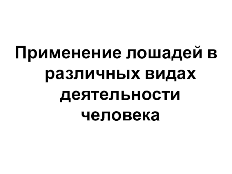 Слайд 14Применение лошадей в различных видах деятельности человека