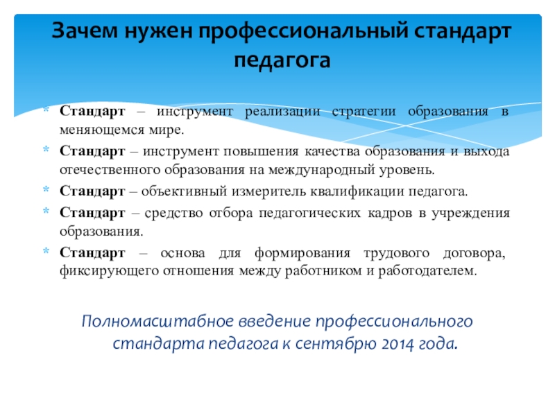 Содержание профессионального стандарта педагога. Воспитательная работа