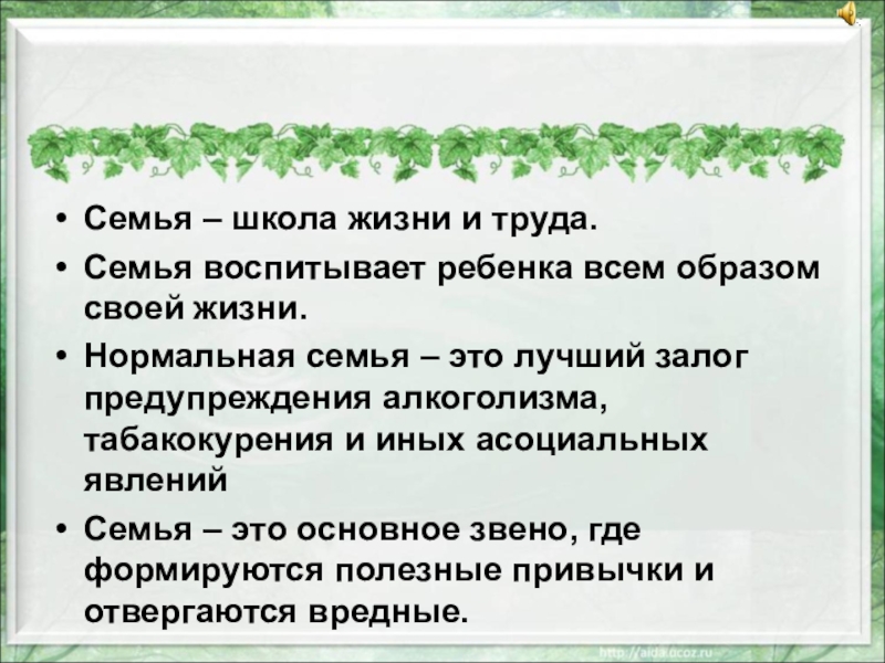 Нормальная семья – это лучший залог предупреждения алкоголизма, табакокурения и иных асоциальных явлений