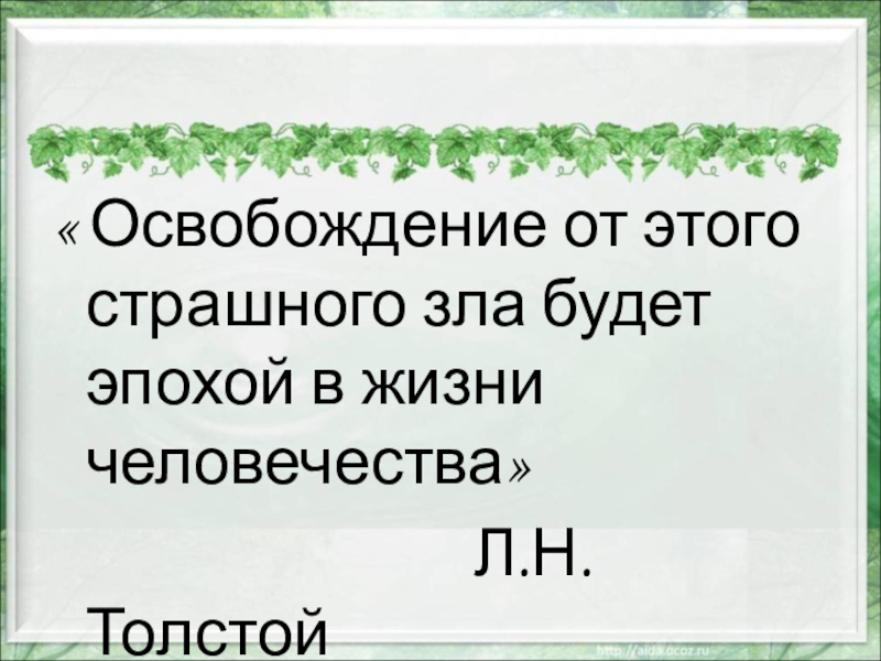 Слайд 32« Освобождение от этого страшного зла будет эпохой в жизни человечества»