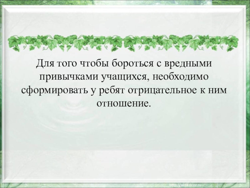 Слайд 17Для того чтобы бороться с вредными привычками учащихся, необходимо сформировать у
