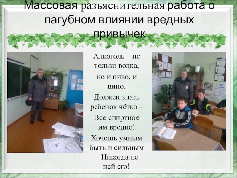 Слайд 28Массовая разъяснительная работа о пагубном влиянии вредных привычек