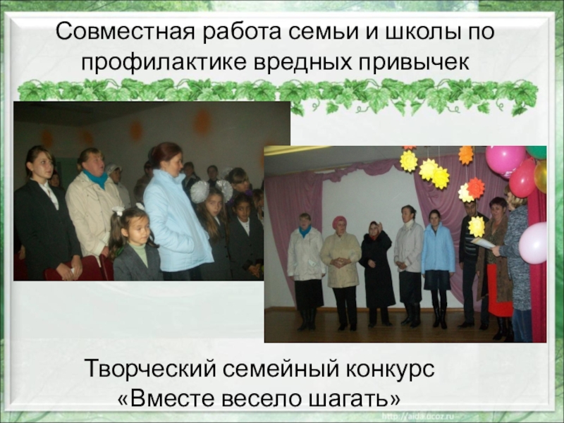 Слайд 8Совместная работа семьи и школы по профилактике вредных привычек