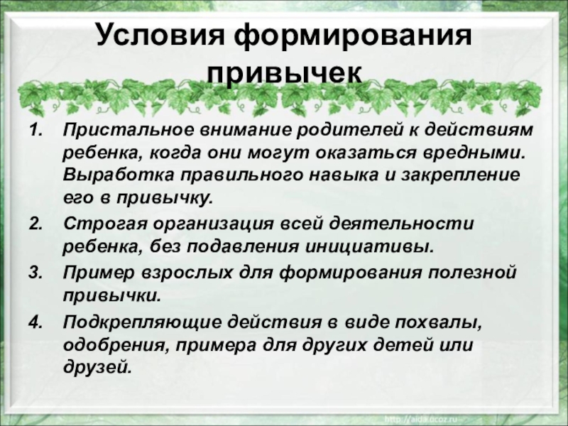 Слайд 11Условия формирования привычек