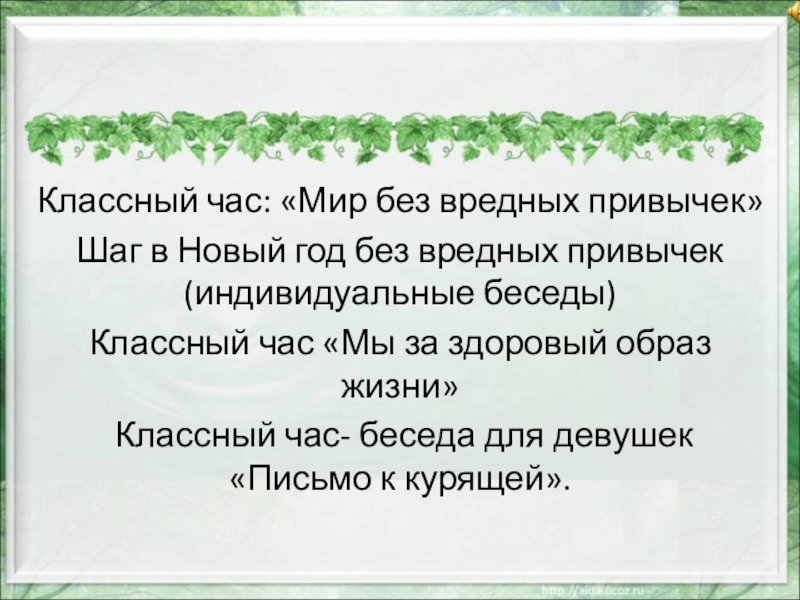 Слайд 20Классный час: «Мир без вредных привычек»
