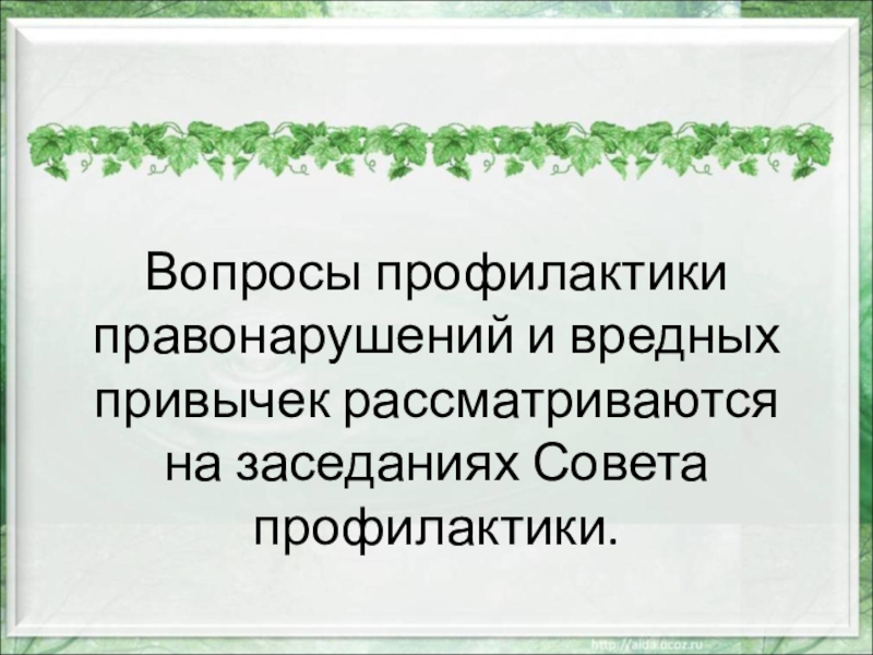 Слайд 5Вопросы профилактики правонарушений и вредных привычек рассматриваются на заседаниях Совета профилактики.