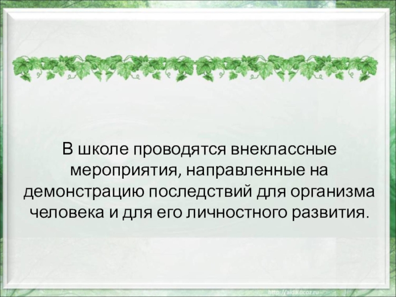 В школе проводятся внеклассные мероприятия, направленные на демонстрацию последствий для организма