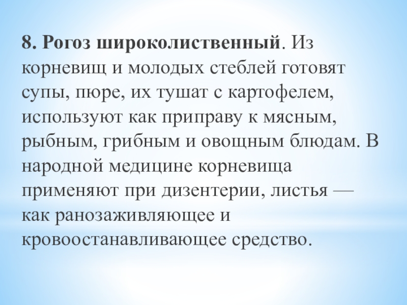 Слайд 358. Рогоз широколиственный. Из корневищ и молодых стеблей готовят супы, пюре,