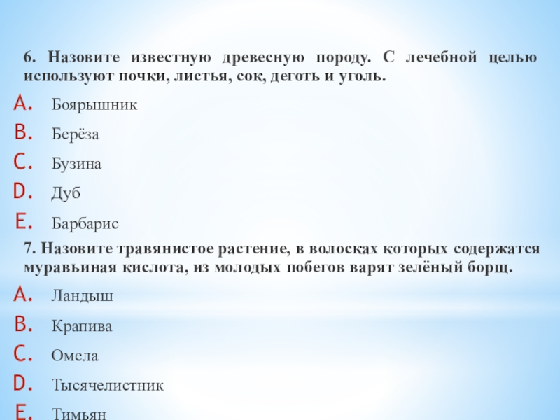 Слайд 56. Назовите известную древесную породу. С лечебной целью используют почки, листья,