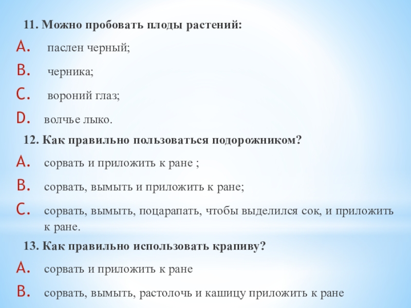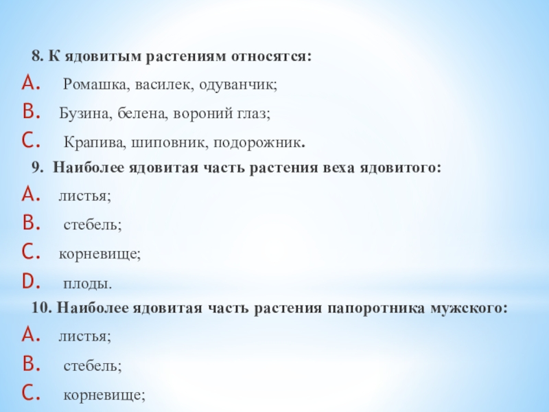 ТЕСТ « Лекарственные, съедобные и ядовитые растения Урала».