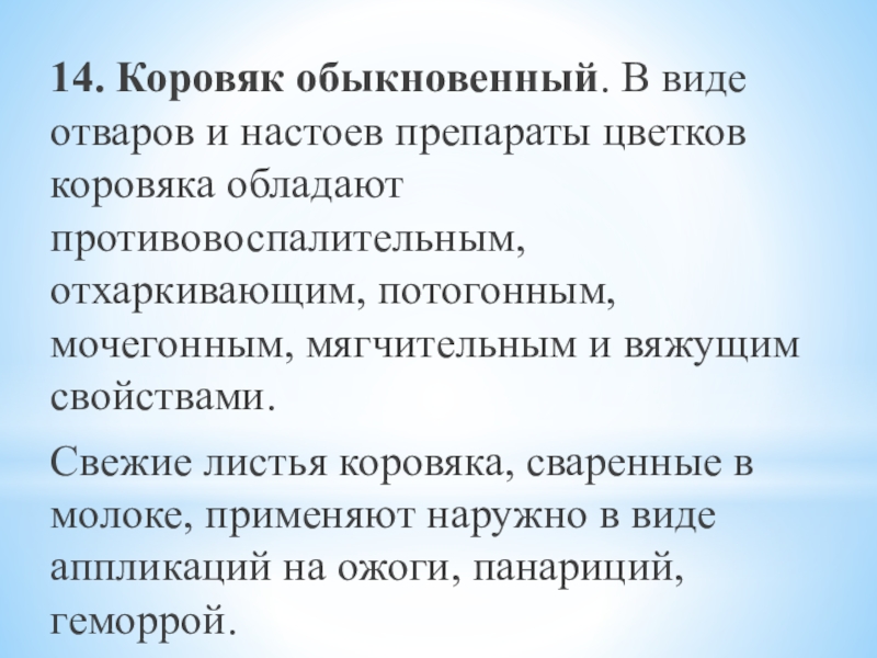 Слайд 4714. Коровяк обыкновенный. В виде отваров и настоев препараты цветков коровяка